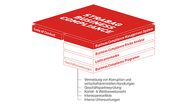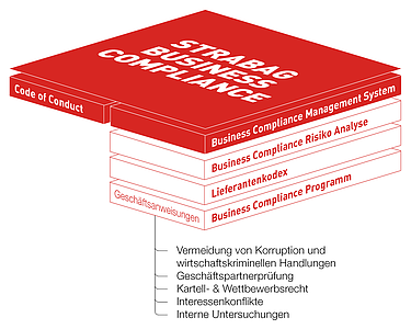Jede Form von Korruption lehnen wir auf das Schärfste ab und haben daher ein effektives Business Compliance Management System installiert, das auch kontinuierlich weiterentwickelt wird. Gesetzesverstöße und daraus resultierende materielle und immaterielle Schäden sollen dadurch vermieden und der gute Ruf von STRABAG als Geschäftspartnerin, Auftragnehmerin und Arbeitgeberin erhalten bleiben.