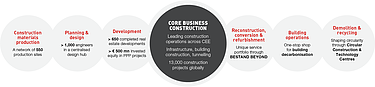 Stability through financial strength & effective risk managementSTRABAG’s financial strength allows it to act on business opportunities in a flexible manner. Maintaining this competitive advantage is therefore a strategic priority. A corporate-wide risk management system ensures uniform and binding standards across geographic borders and – supported by artificial intelligence – reduces the risk of loss-making projects.